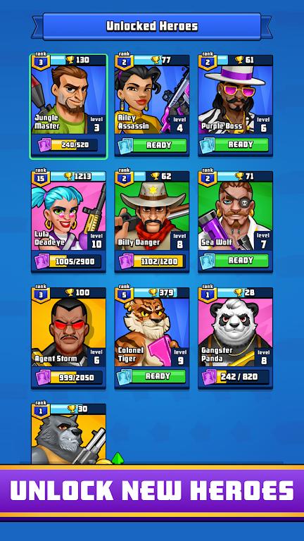 了解你的角色的特殊能力和弱点,并决定你的策略来打败他们。收集英雄卡并解锁新角色。
