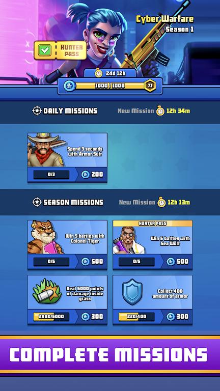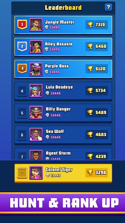 参加季节性活动,完成任务,收集奖励,让你立于不败之地! 在世界各地的玩家中排名并爬到排行榜的顶端。邀请并击败你的朋友,向他们展示谁是最好的猎人! 你能听到敌人的脚步声吗?准备好在猎人英雄史诗般的战争中占据一席之地!