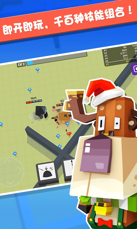 无限金币、钻石,解锁所有角色,【需联网】,点击右下角图标即可看到金币钻石角色。(仅可在离线模式中可用。钻石可在在线对战中复活使用。)