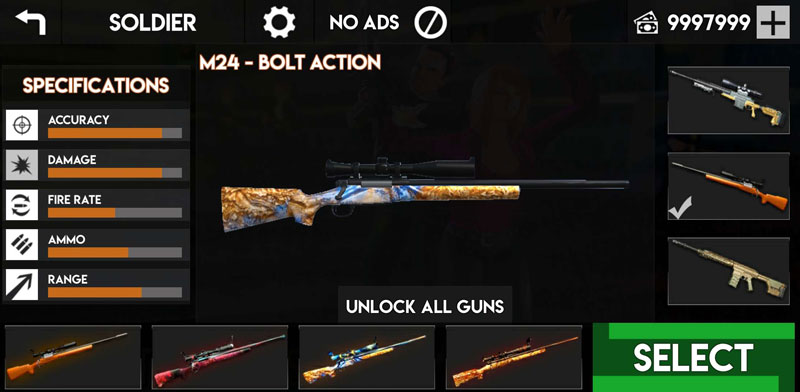 你接到任务要求,用终极大狙击手射击目标。选择你最喜欢的竞技场,用最新的狙击手步枪进行追击。追击维加斯的强盗和小偷,完成城市狙击手的射击任务。