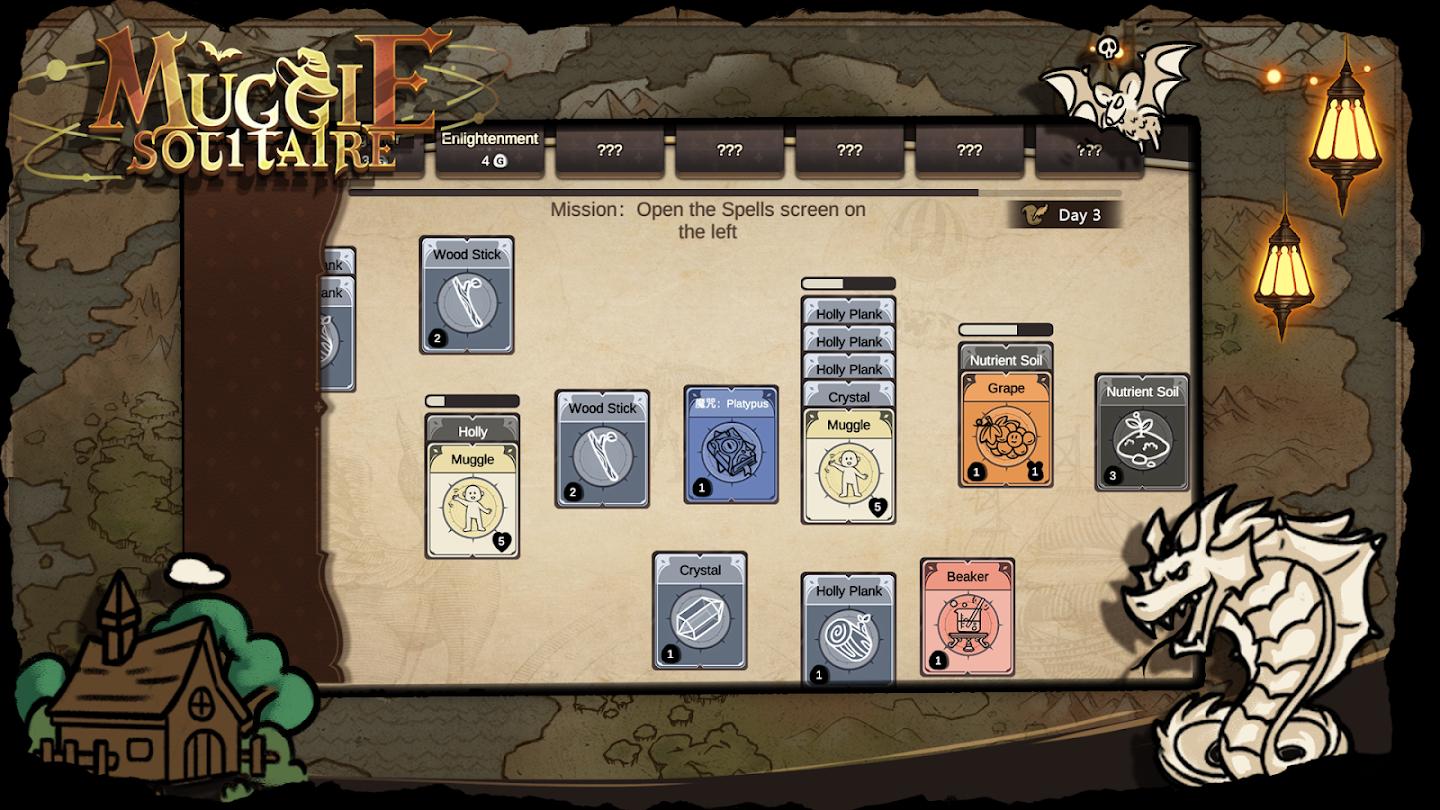 卡牌获得金币,用金币购买卡包获得多张卡牌,利用这些卡牌资源拓展你的村庄。