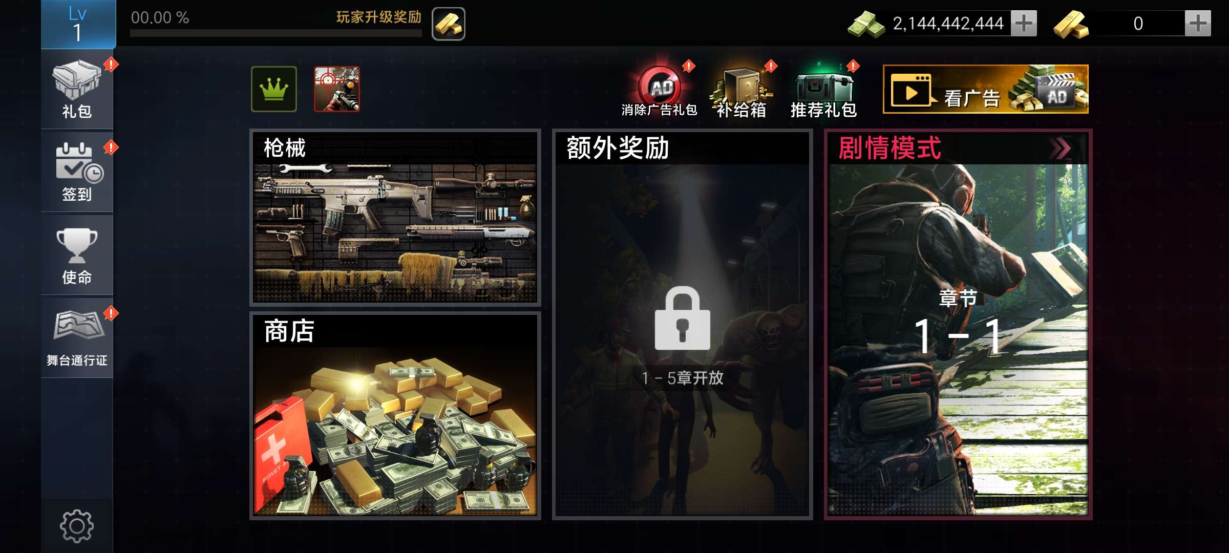 - 无限关卡:每个关卡都会出现各种类型的僵尸和巨型僵尸首领武器收藏:众多经典枪支等着你解锁、合并和升级。