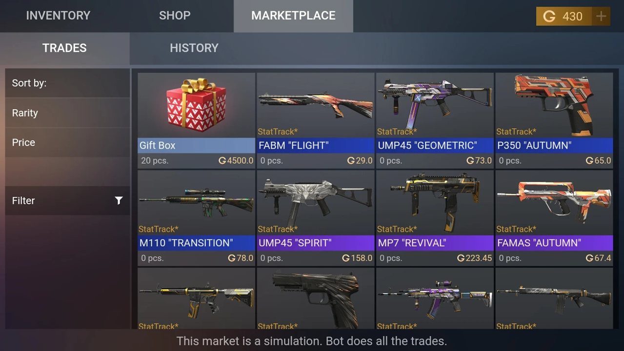所有战利品都会直接进入您的虚拟库存,但是不幸的是,这些外观无法在真实游戏中显示。 Case Simulator是为“僵硬”粉丝创建的一个应用程序,纯粹是娱乐性的。